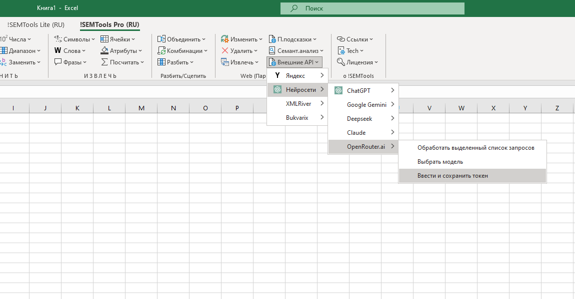 Надстройка SEMTools делает интеграцию OpenRouter AI с Excel максимально простой: не нужно писать и редактировать сложные скрипты, или разбираться в особенностях API. В этой статье вы узнаете, как подключить OpenRouter к Excel и начать обрабатывать данные в ваших задачах.